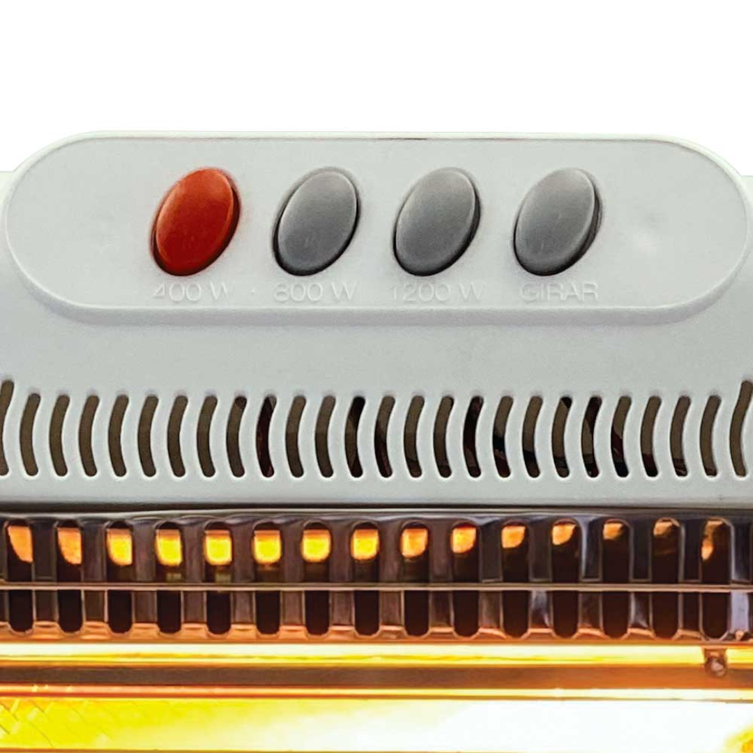 Estufa eléctrica de tubos halógenos de larga duración. Cuenta con Función giratoria, permitiendo calefaccionar de