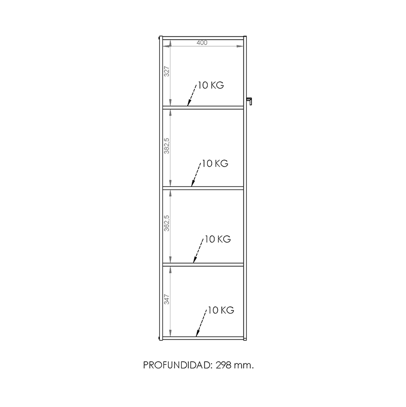El mismo cuenta con cuatro espacios de guardado, y en su interior con tres estantes que brindan un amplio almacenamiento en relación a las medidas del producto.