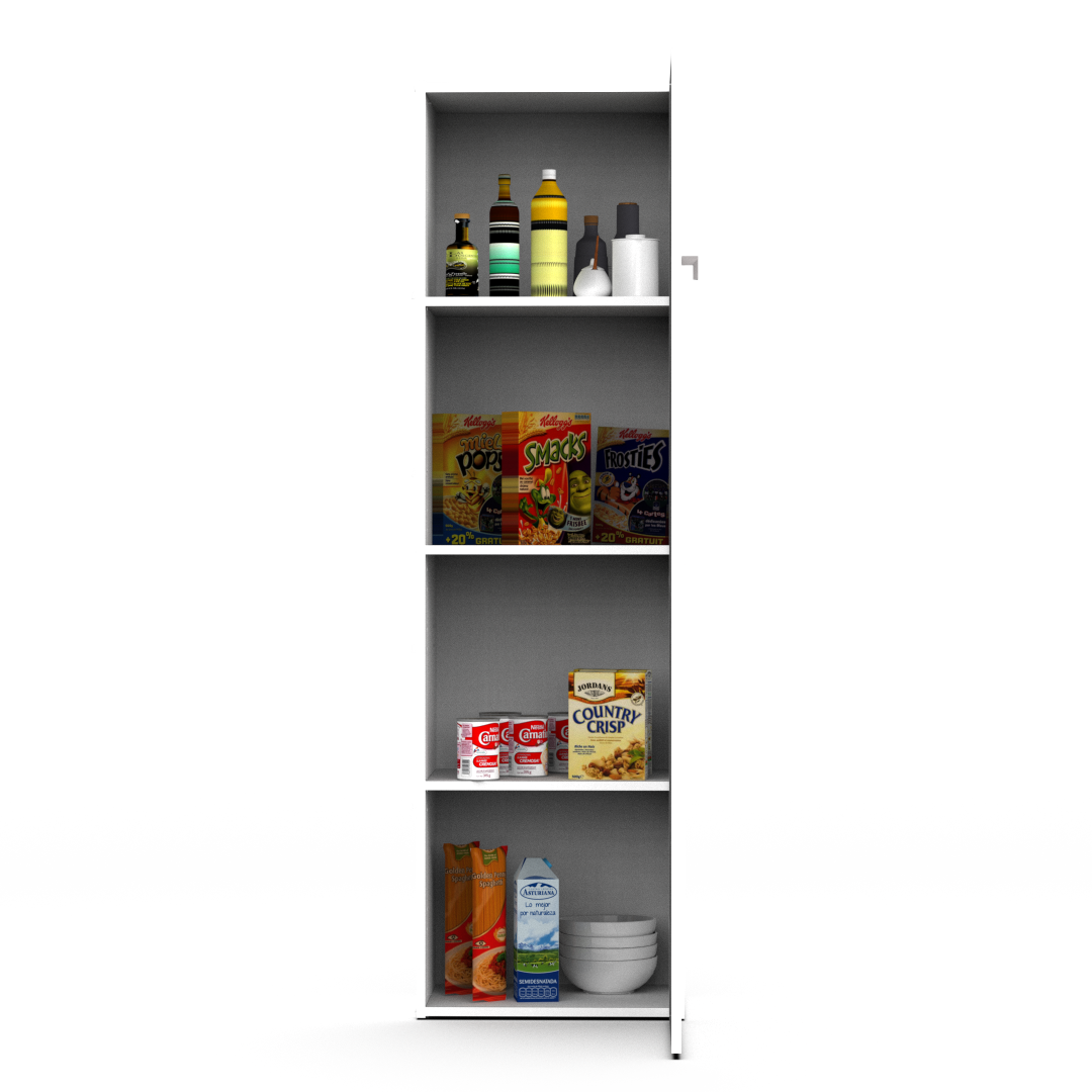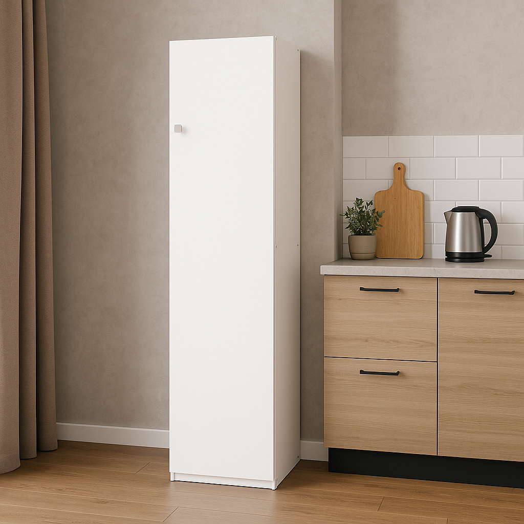 El despensero vertical de una sola puerta se caracteriza por su diseño simple, que permite ser utilizado en distintos ambientes.