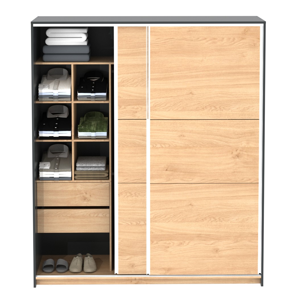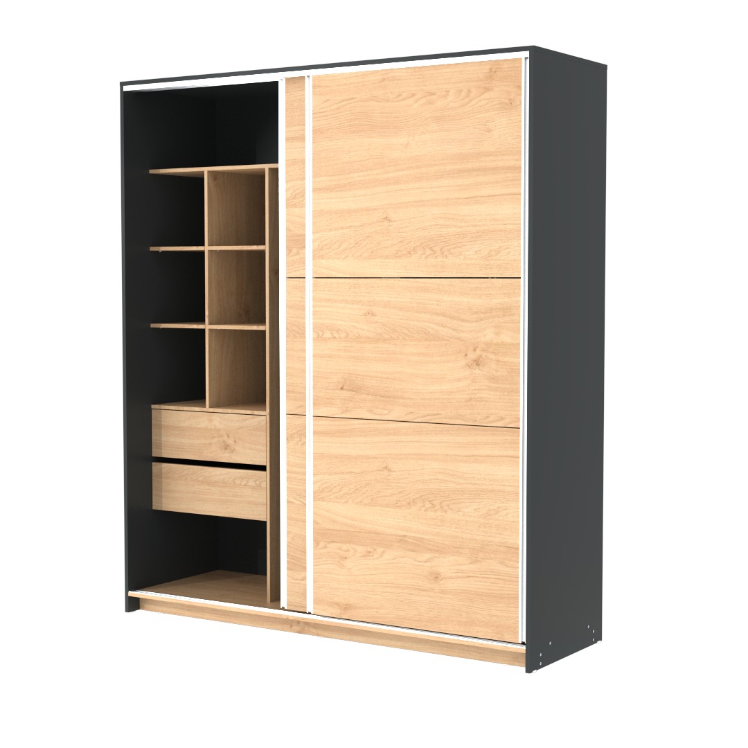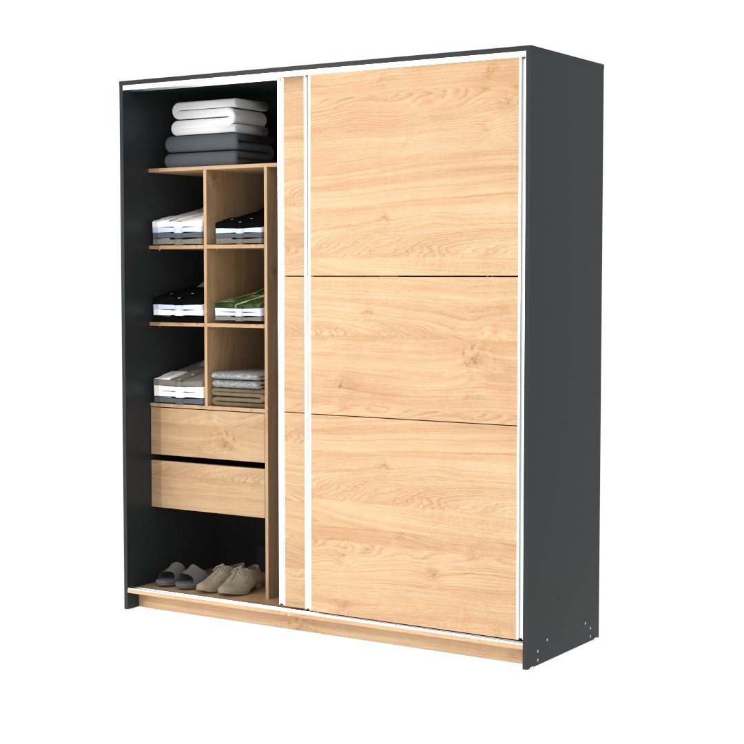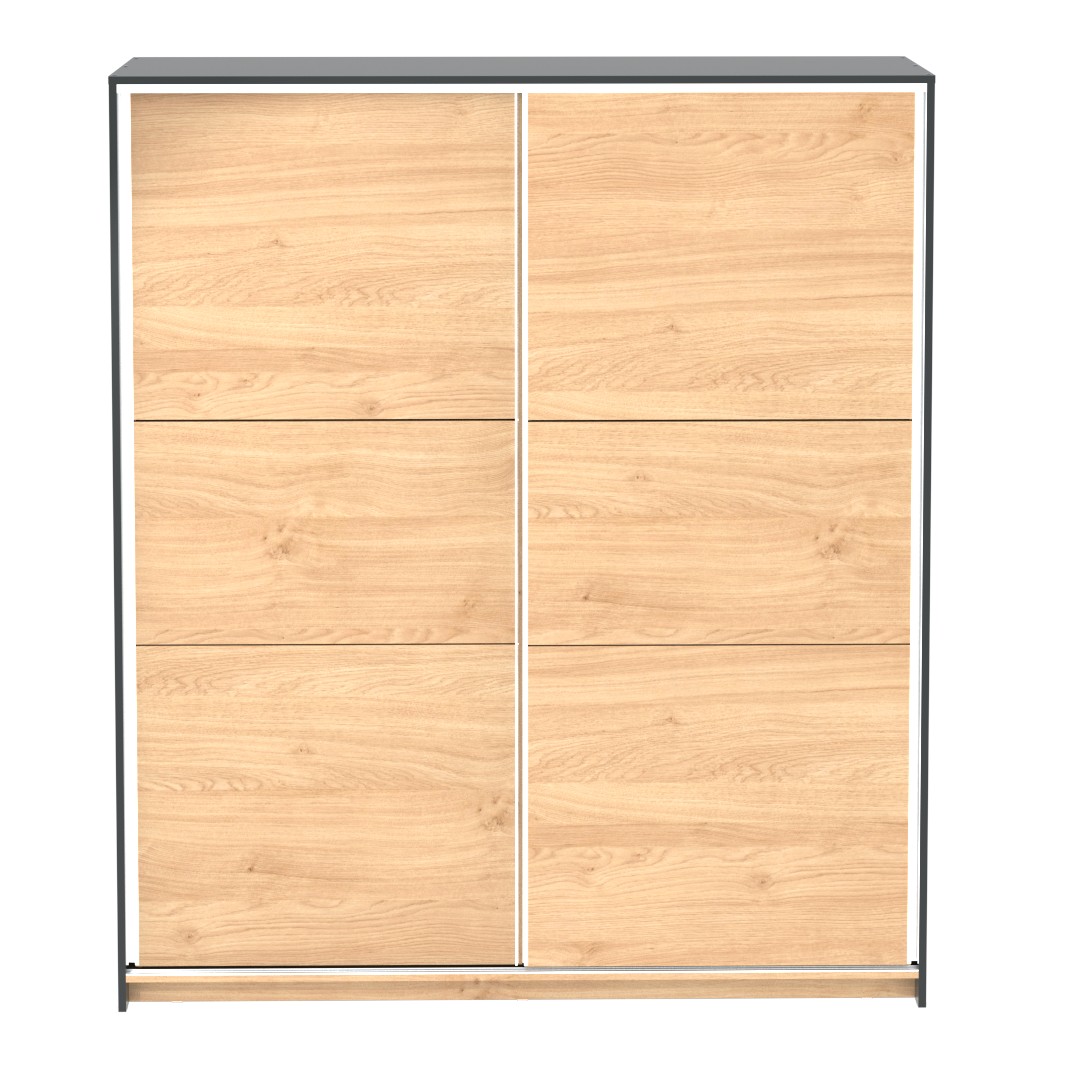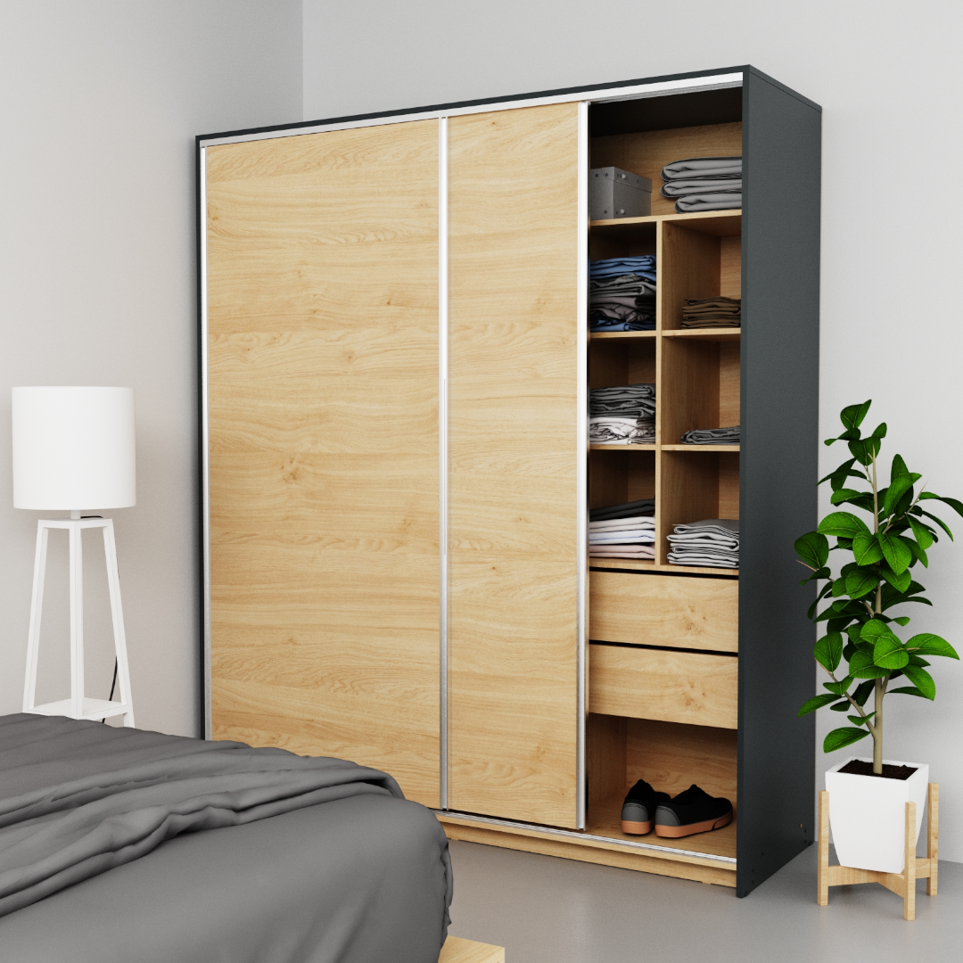 Está disponible en dos combinaciones: Grigio/Roble Bardolino. Este mueble ofrece una solución de almacenamiento práctica. Este placard viene desarmado y preparado para ensamblar de manera rápida y simple, por lo que dentro de la caja tenemos los correspondientes instructivos.