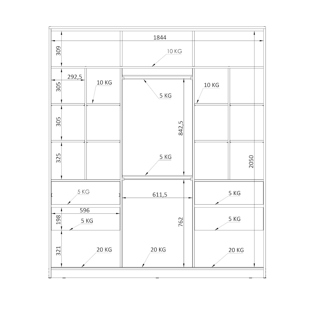 Este producto posee 4 cajones con correderas telescópicas, estantes para guardado y espacios para colgar ropa y accesorios. Además contiene un estante superior para guardar bolsos u otros objeros de mayor tamaño, y un estante inferior para poner calzados.