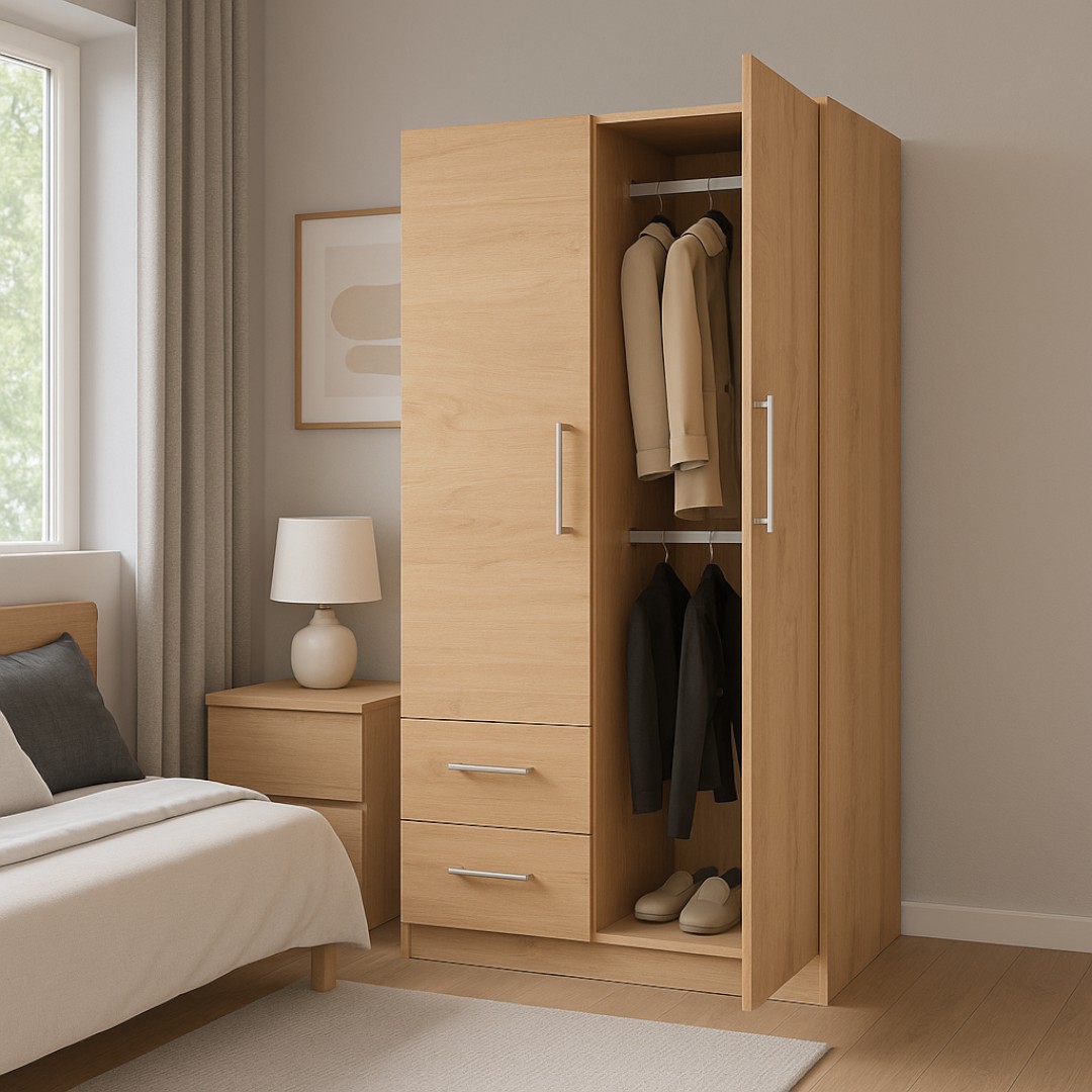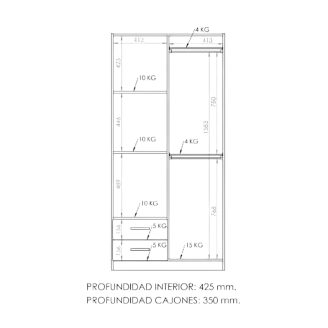 El placar de dos puertas de la línea clásica está construido en melamina de 15 milímetros tiene un diseño simple y es ideal para espacios reducidos.
