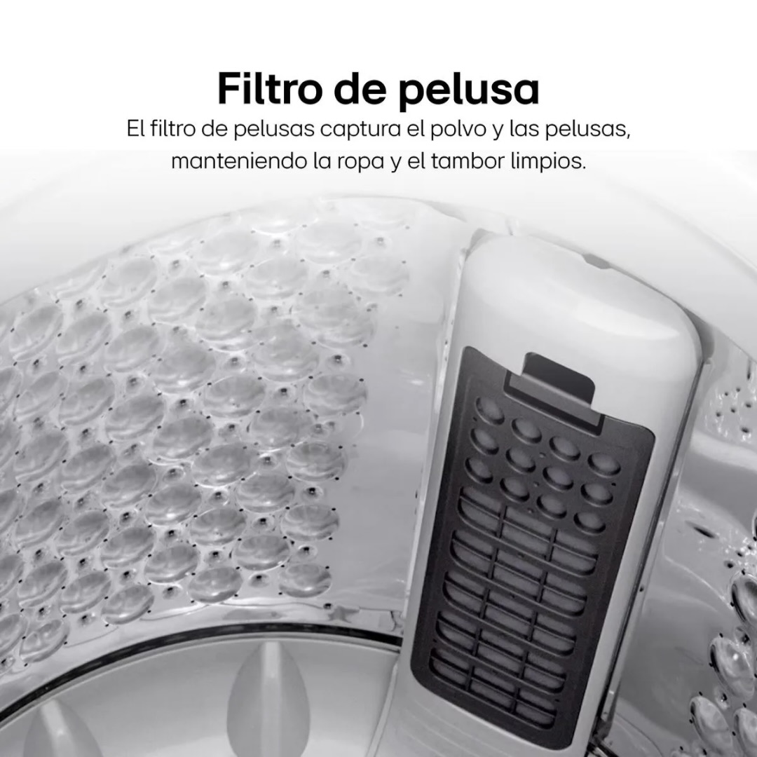 El filtro de pelusas captura el polvo y las pelusas, manteniendo la ropa y el tambor limpios.
